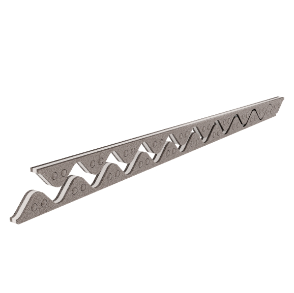 Длина заполнителя 855 мм достаточна для монтажа на 1 листе Ондулина Смарт с учётом нахлеста следующего листа. Заполнитель может быть вентилируемым и невентилируемым. Если подкровельное пространство не имеет вентиляции, необходимо освободить специальные отверстия в заполнителе при помощи отвёртки или пальца.
